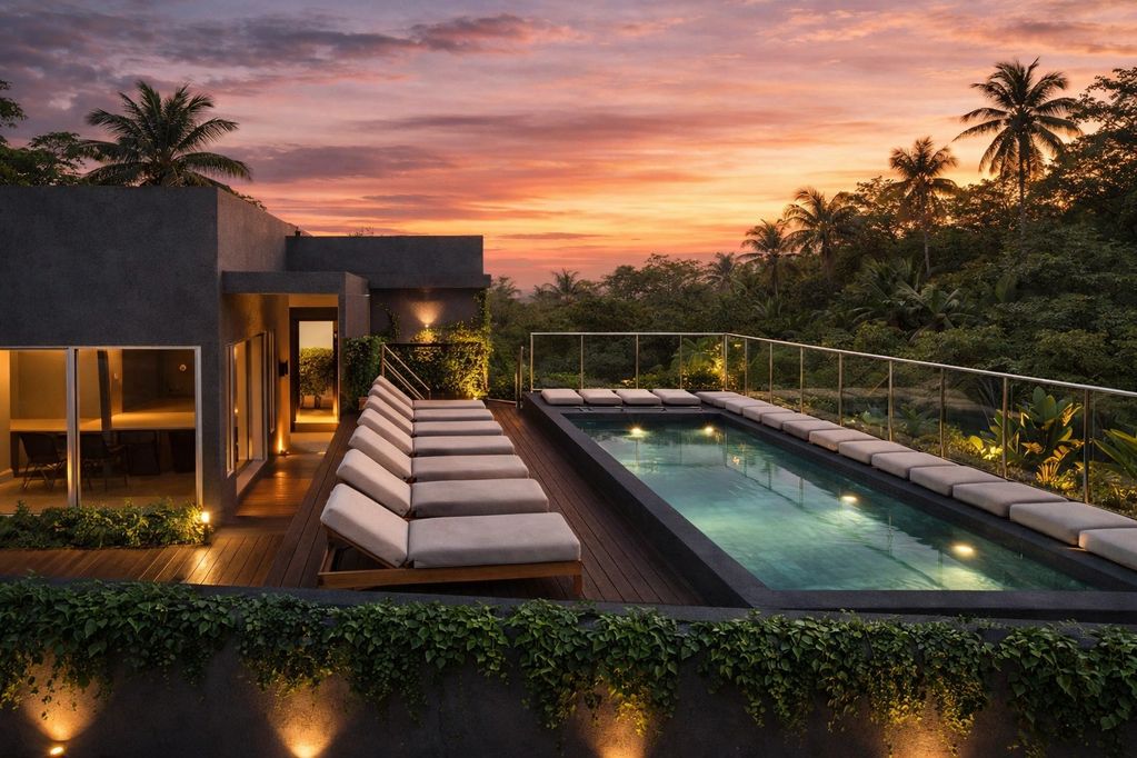 Conjunto Residencial dentro de la zona de Aldea Zama, Tulum. Con un programa arquitectónico de 05 departamentos de una planta, 02 departamentos de dos niveles y 02 estudios. Además de Amenidades de Lounge, Asoleadero, Alberca y Jacuzzi en el RoofGarden.